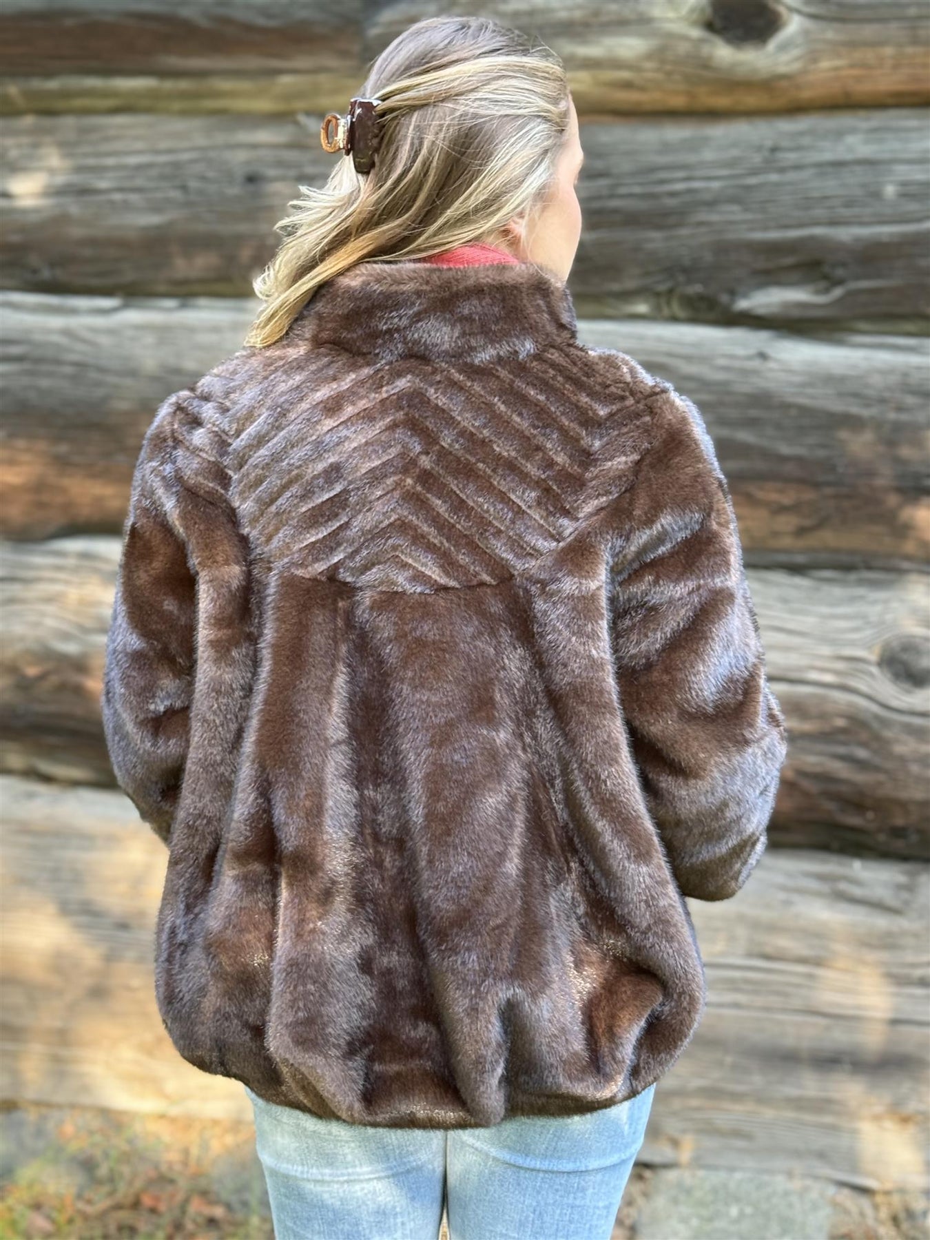 Kelly Fake Fur Mink Jacket Brown