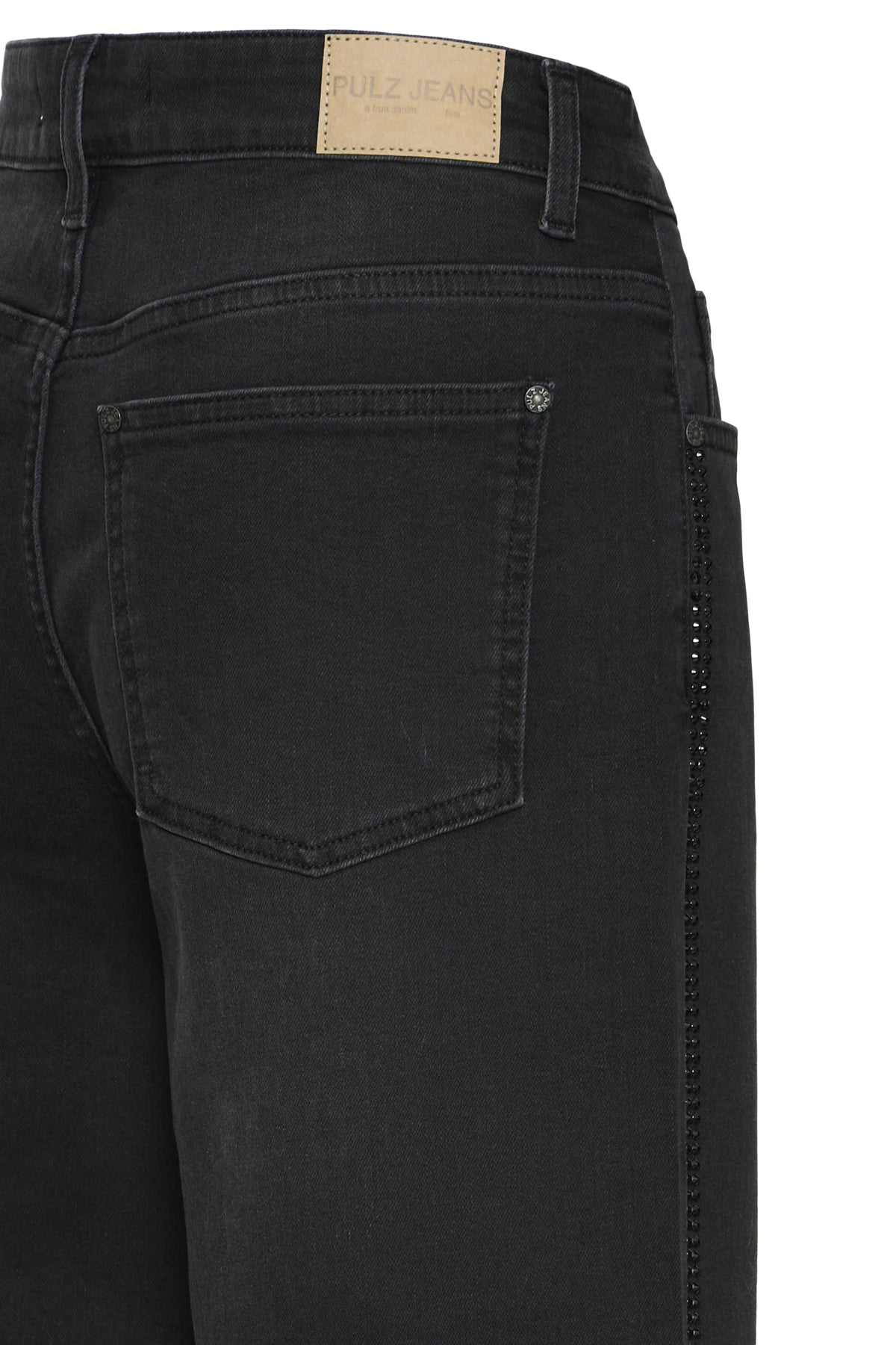 Tøff vid jeans med rette ben. Klassisk modell med 5 lommer. Paljetter på sidene