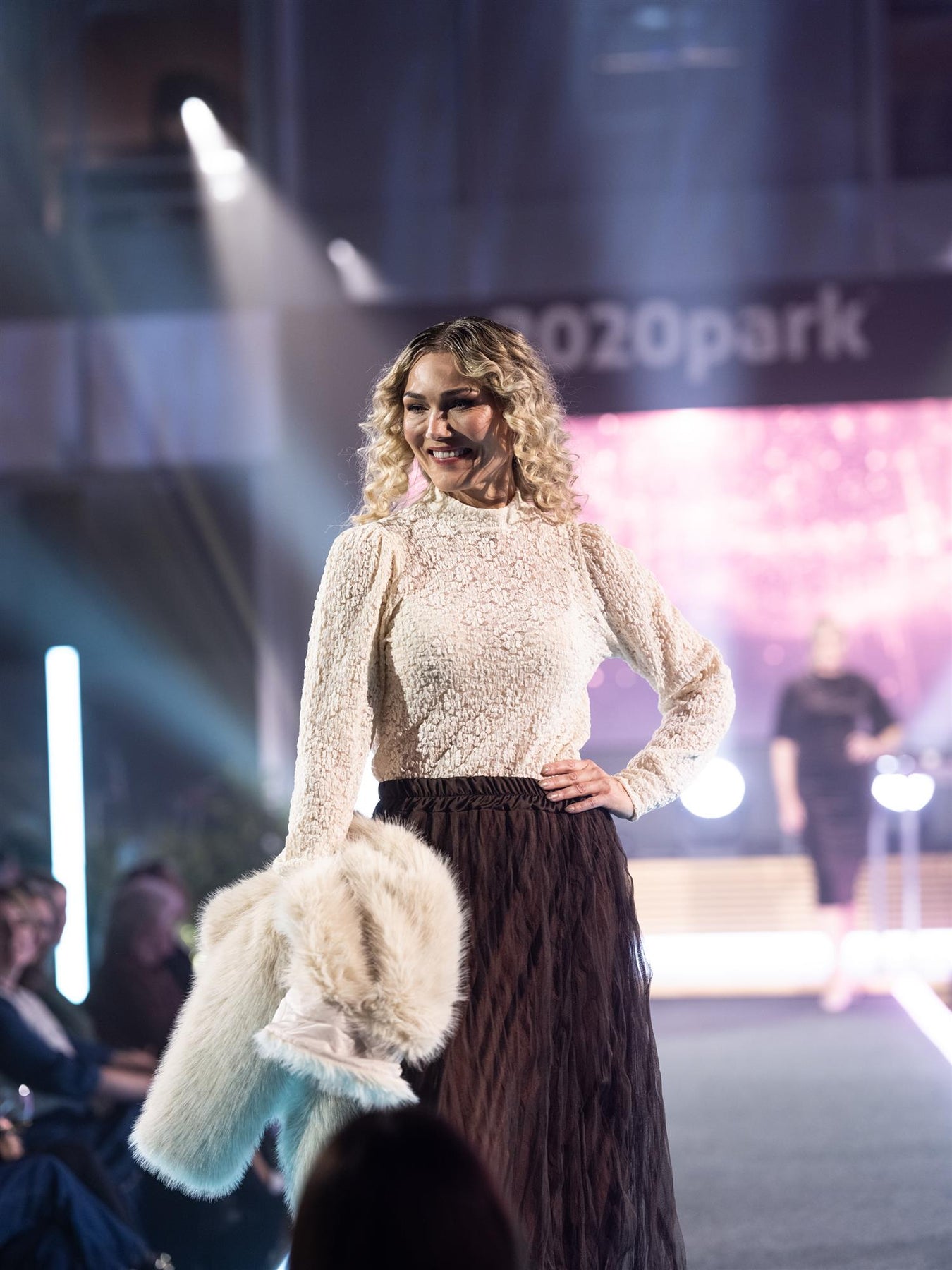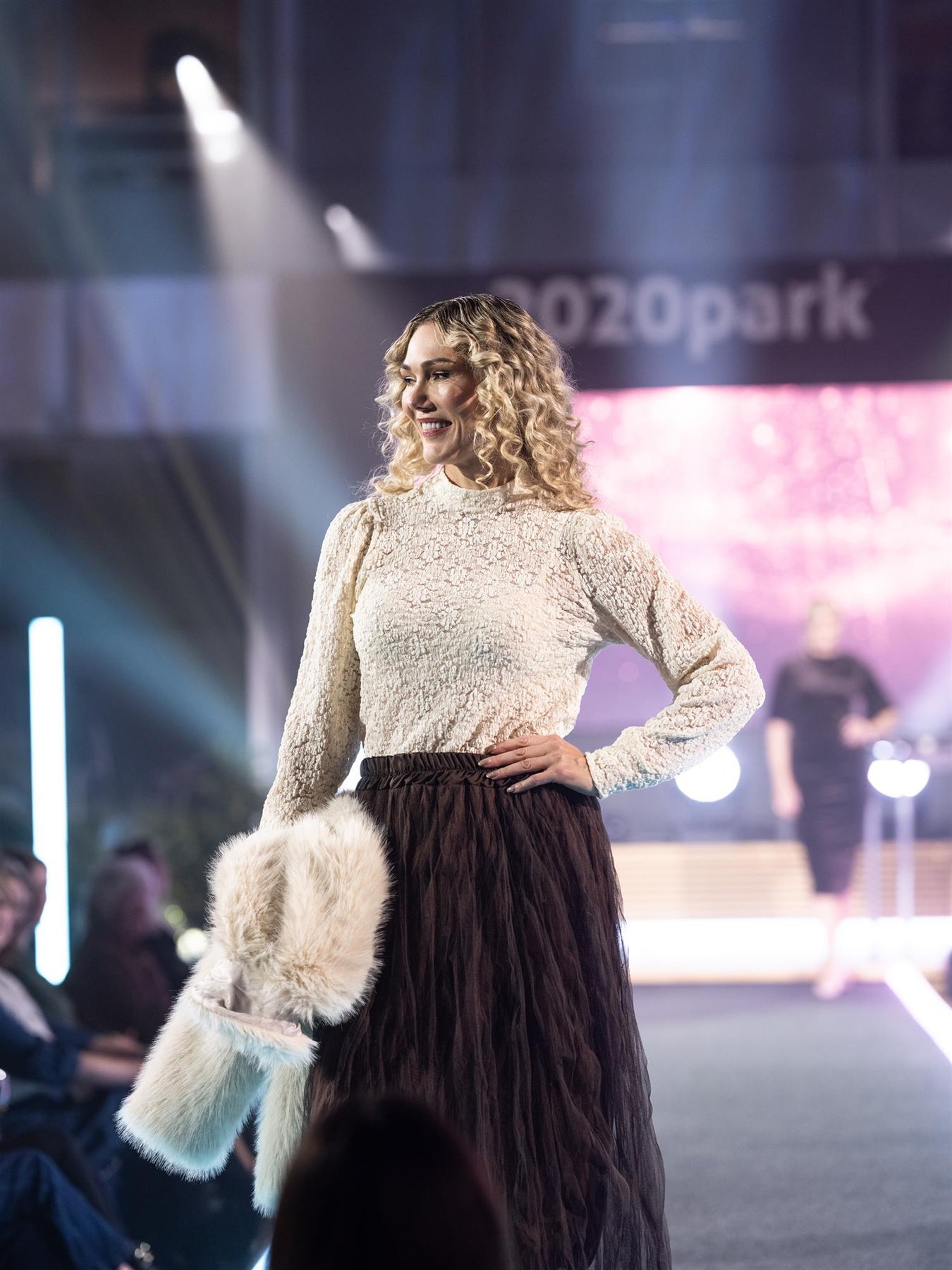 Nydelig bluse fra Pulz, med blonder og rund hals og med en liten ståkrage som lukkes med to knapper bak i nakken.