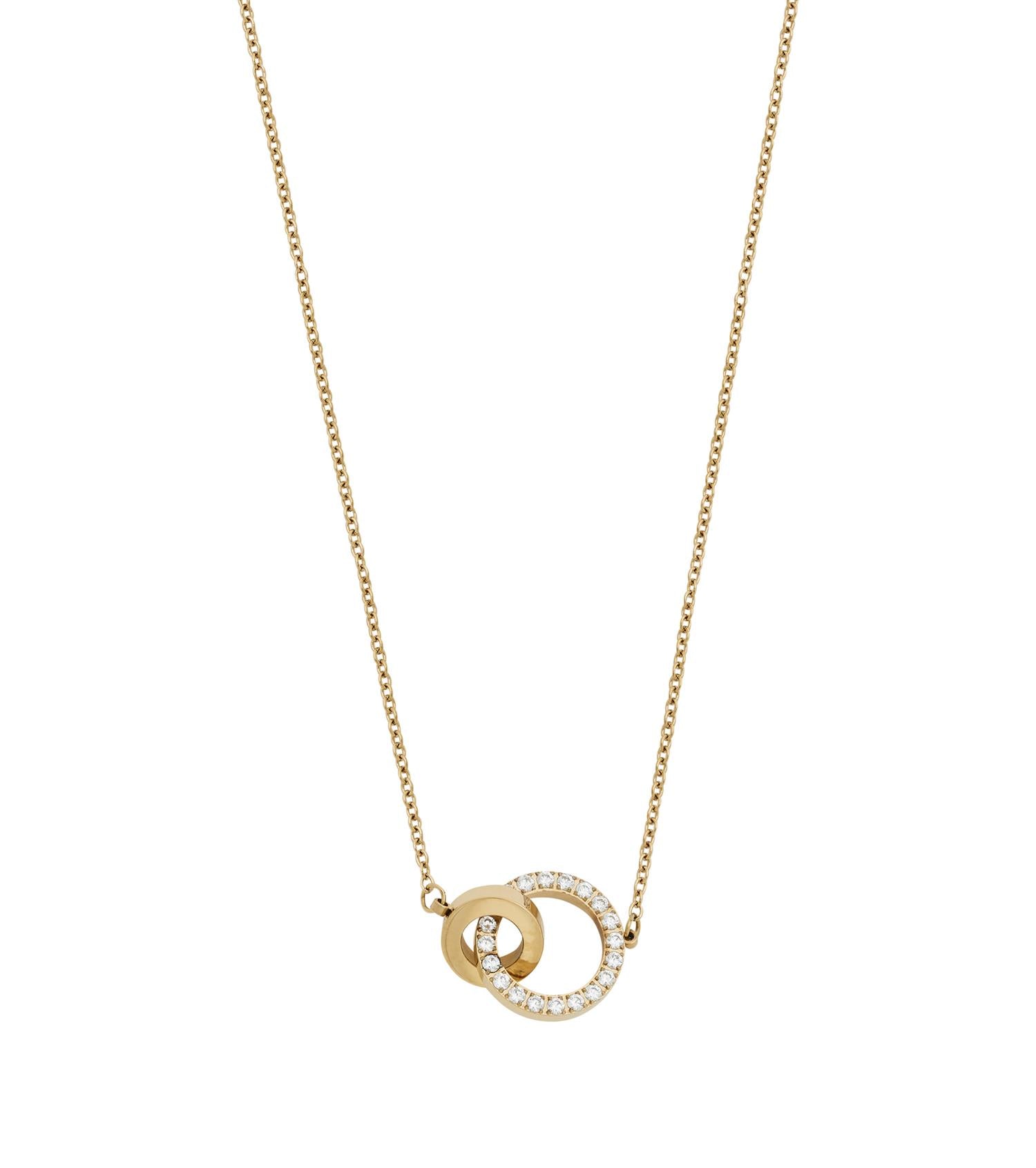 Eternal Orbit-serien er designet med inspirasjon fra Edblads klassiker Eternity. Den vakre dekorasjonen har en liten ring som lenker sammen med en stor, der klare steiner er festet rundt hele oversiden. Eternal halskjede kan du bruke til enhver anledning og er også en fin og populær gave. Vises her i blankt 14K gullbelegg. Kombiner gjerne med tilhørende øredobber.