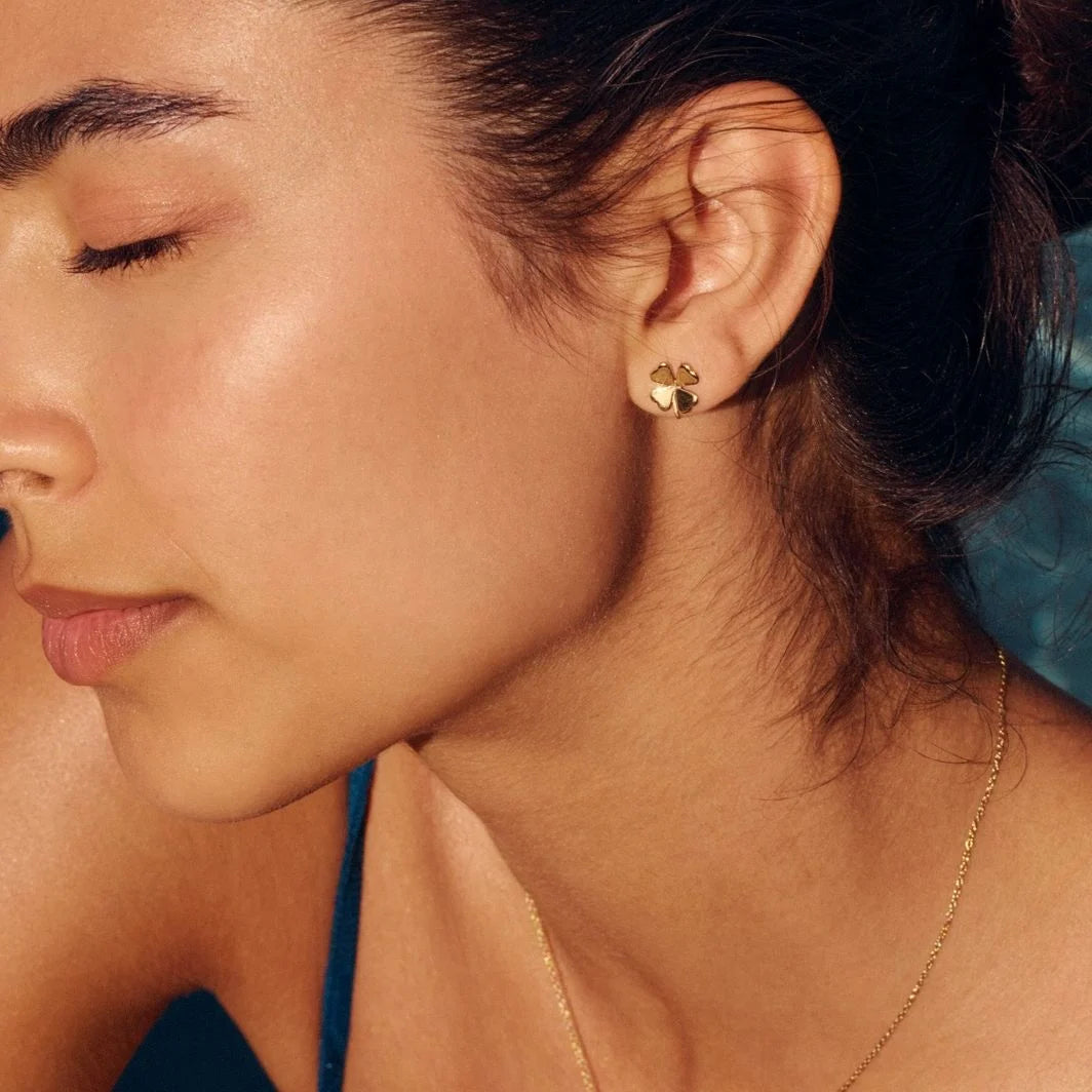 Smykke fra Edblad. Lucky! Lykken er en pen firkløver, som denne med sine lett buede blader og en liten kort stilk. Lucky studs vises her i blankt 14K gullbelegg. Bruk dem gjerne sammen med halskjede og armbånd fra Lucky.