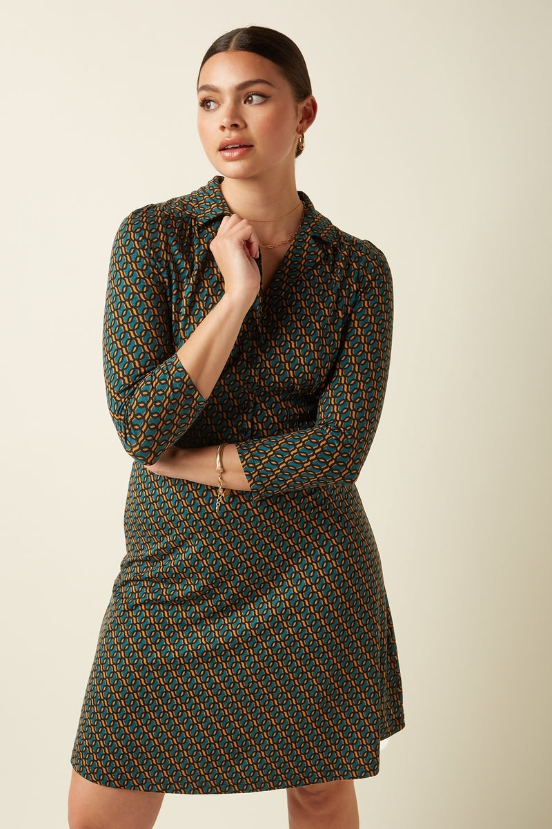 Lekker kjole som er avdelt i livet. Smale 3/4 lange ermer.