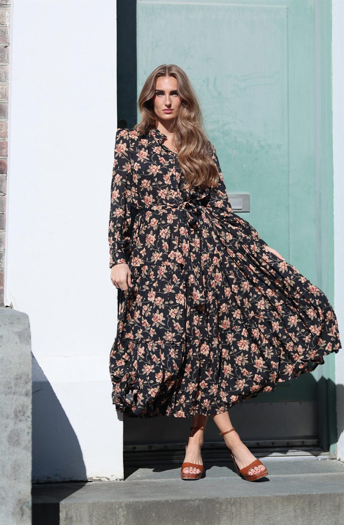 Den lekreste kjolen i det aller vakreste printet. Supermykt og deilig stoff som faller så utrolig fint. Masse vidde i skjørtet. Knapper i front, 3/4-dels lange ermer med rysj og avtagbart belte i livet. Lommer.