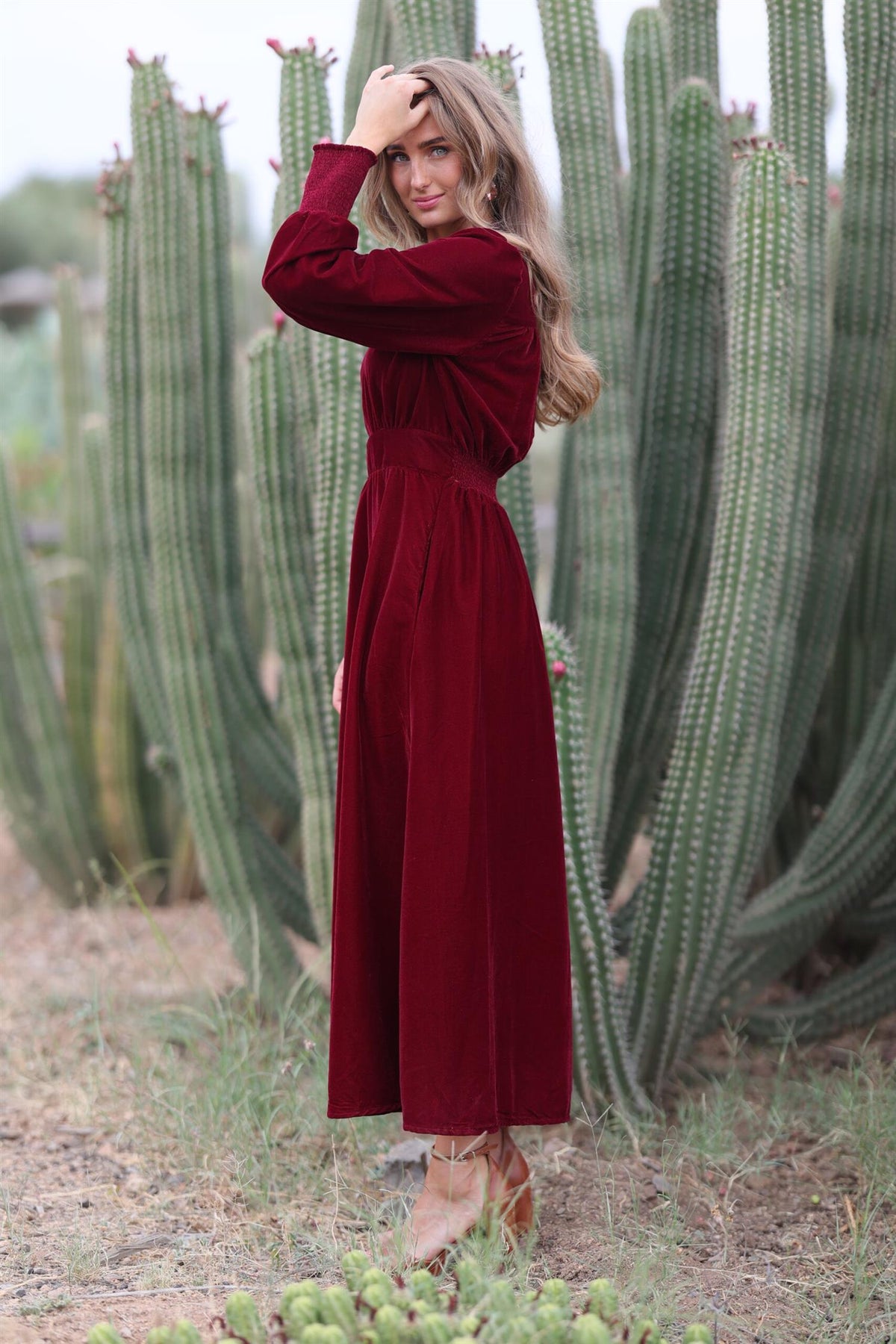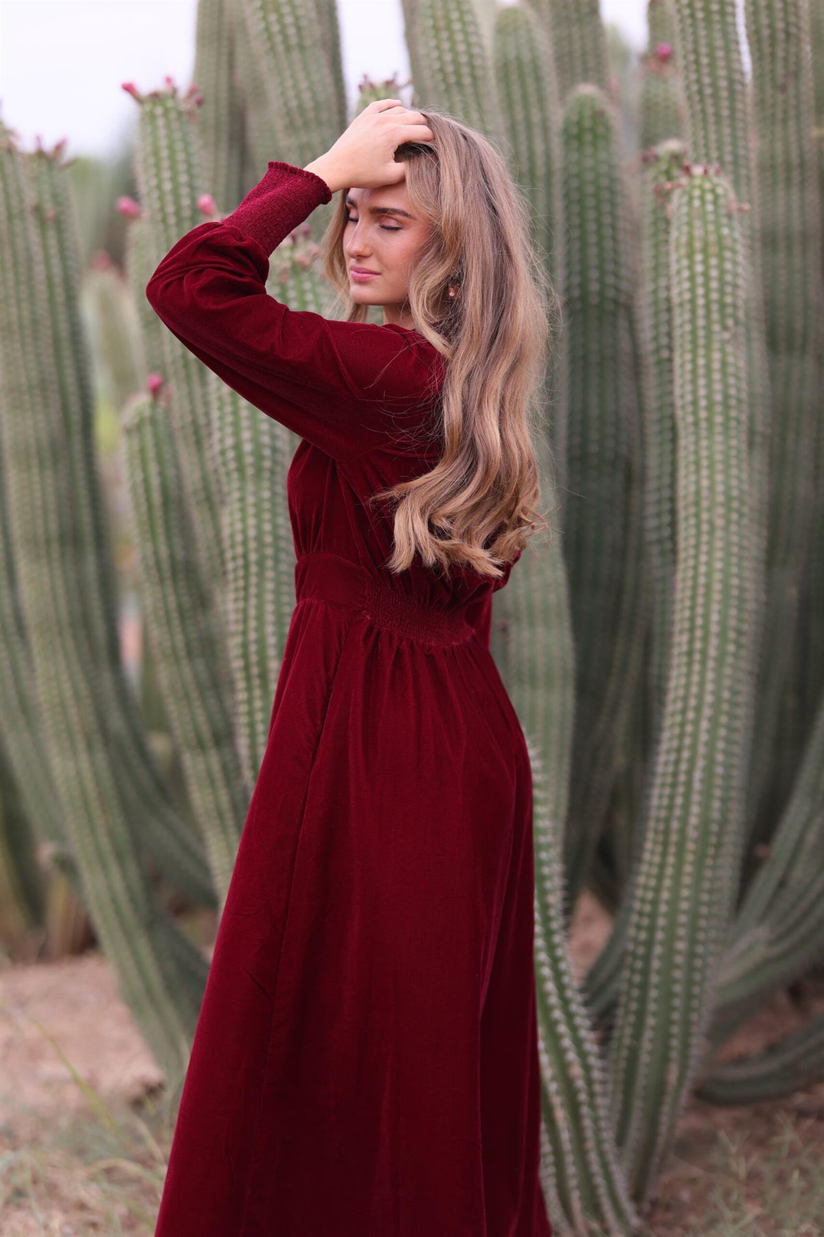 Rett og slett en helt nydelig maxikjole i mykeste fløyel. Elastiske mansjetter. Glidelås i fronten på brystet og også til lukking bak. Lommer i sidene og strikk bak på ryggen. Utrolig deilig å ha på seg.
