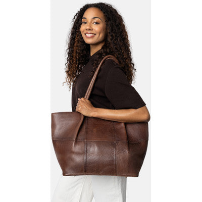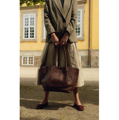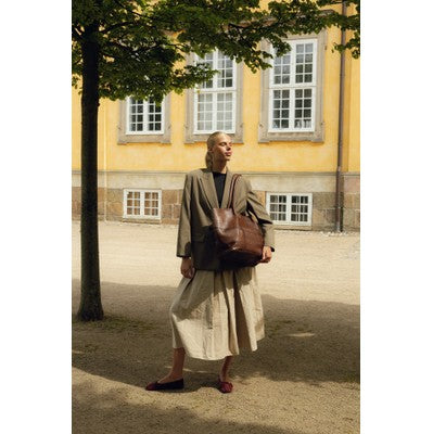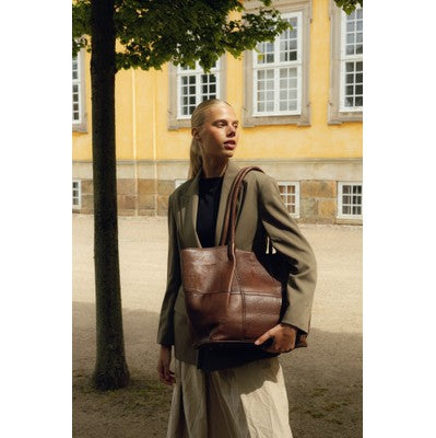 Gildelås lomme inni og 2 åpne lommer. Vesken lukkes med trykknapp.