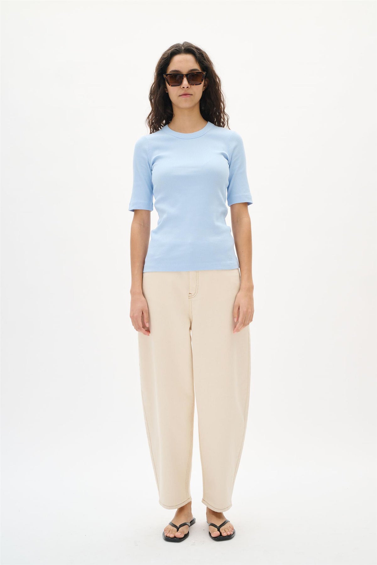 DagnaIW V T-skjorte i fargen Windsurfer kombinerer stil og komfort med sitt slanke snitt. Laget av en myk blanding av bomull og elastan, gir denne T-skjorten en perfekt passform som følger kroppens linjer.