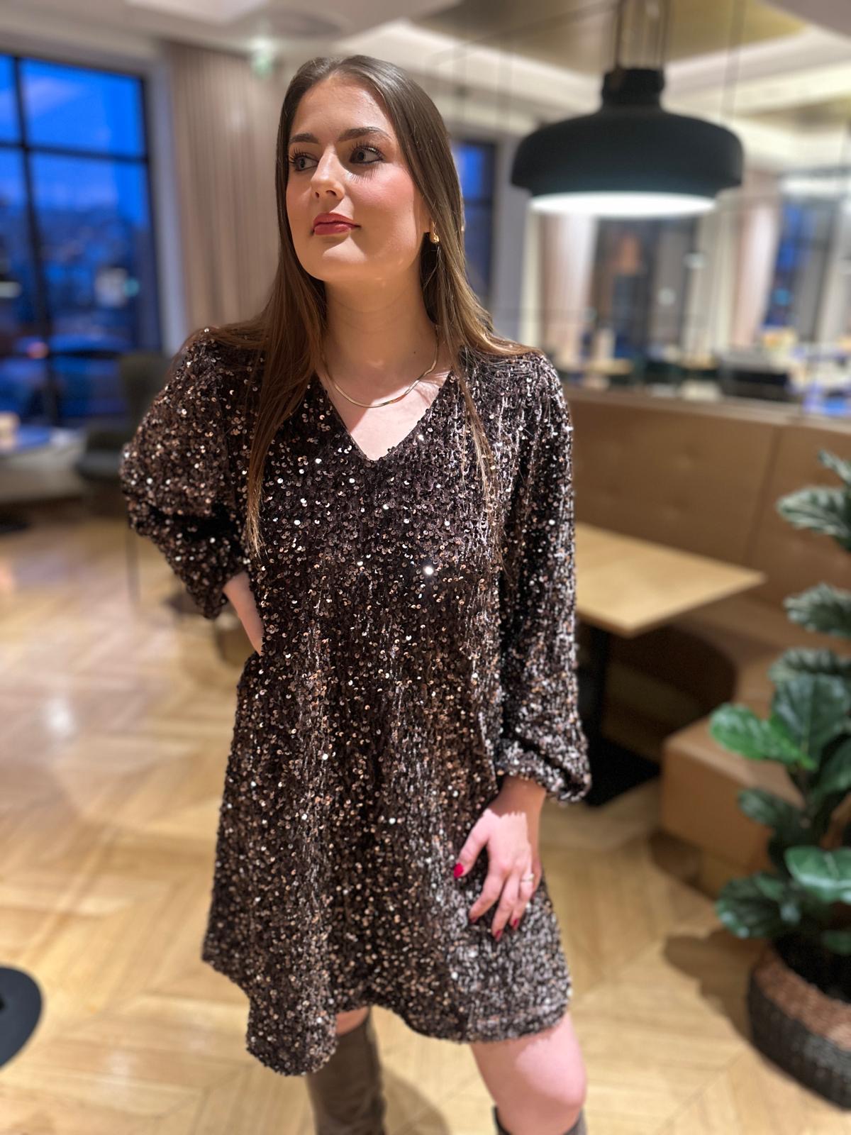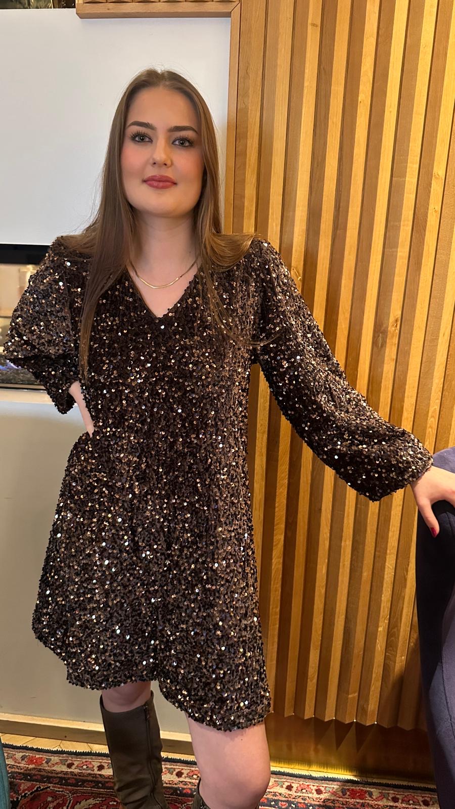 Flott paljett kjole i en nydelig brun farge.