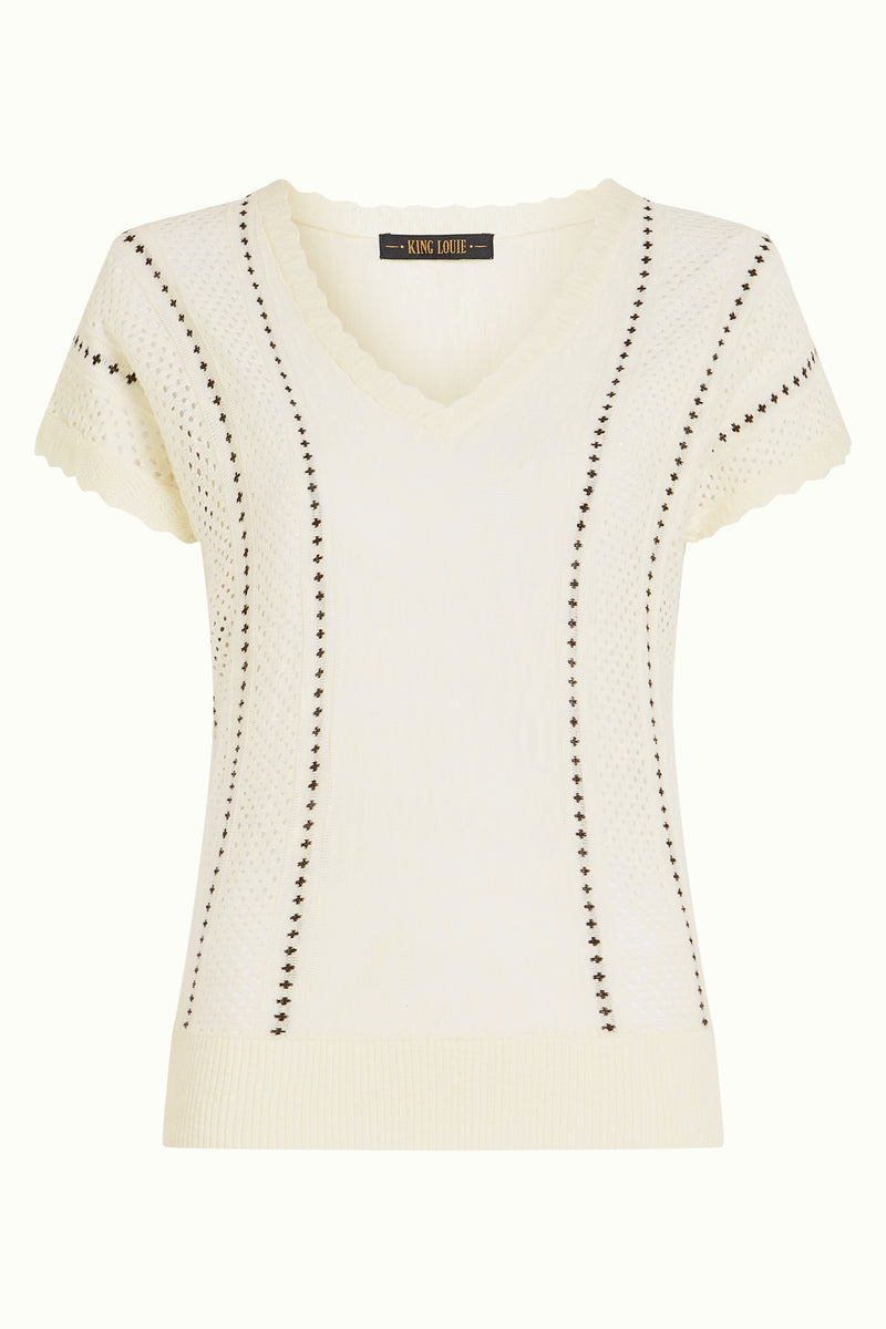 Flott kort ermet strikket topp med V hals.