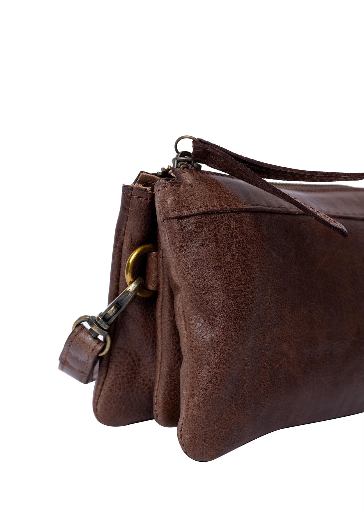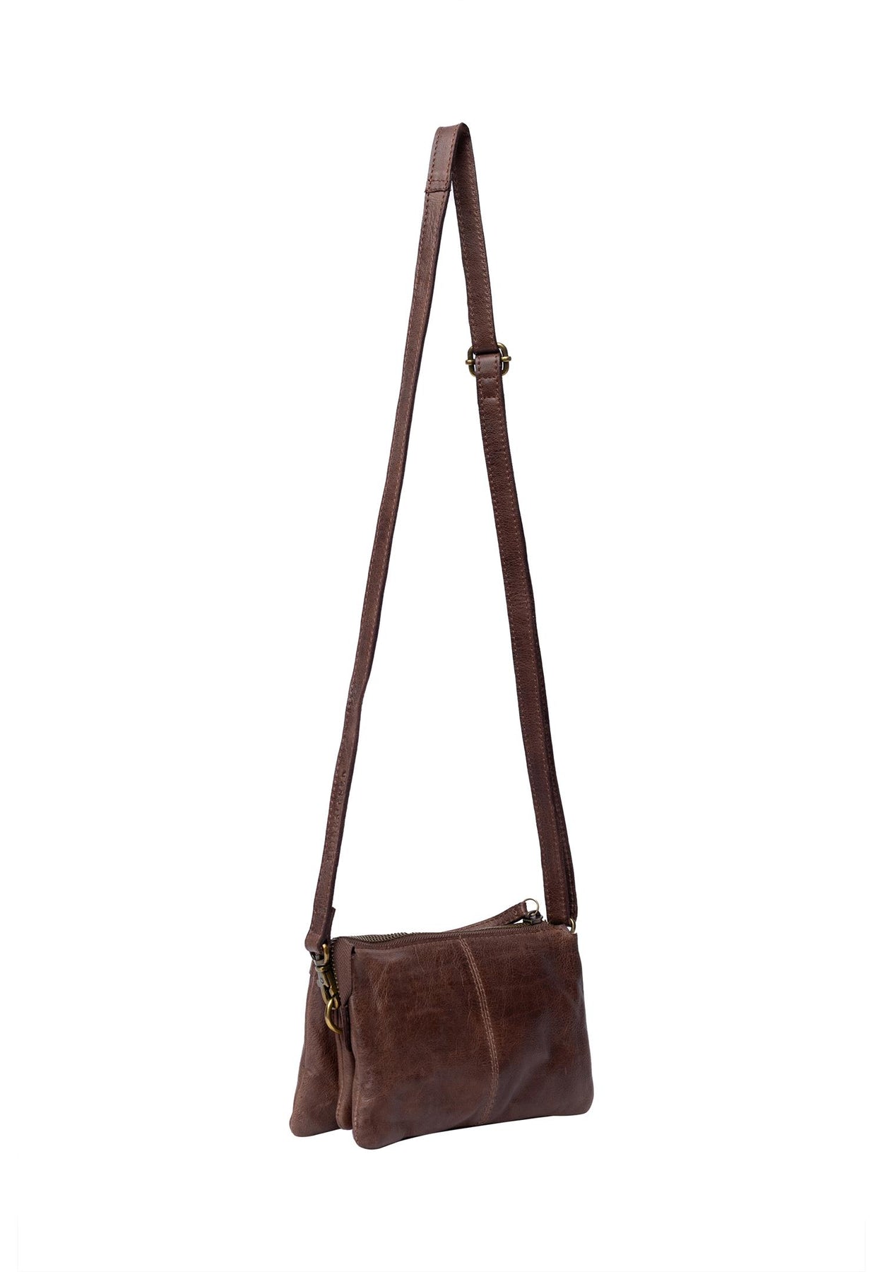 Fin liten crossover/clutch skinnveske i en flott mørk brun farge.