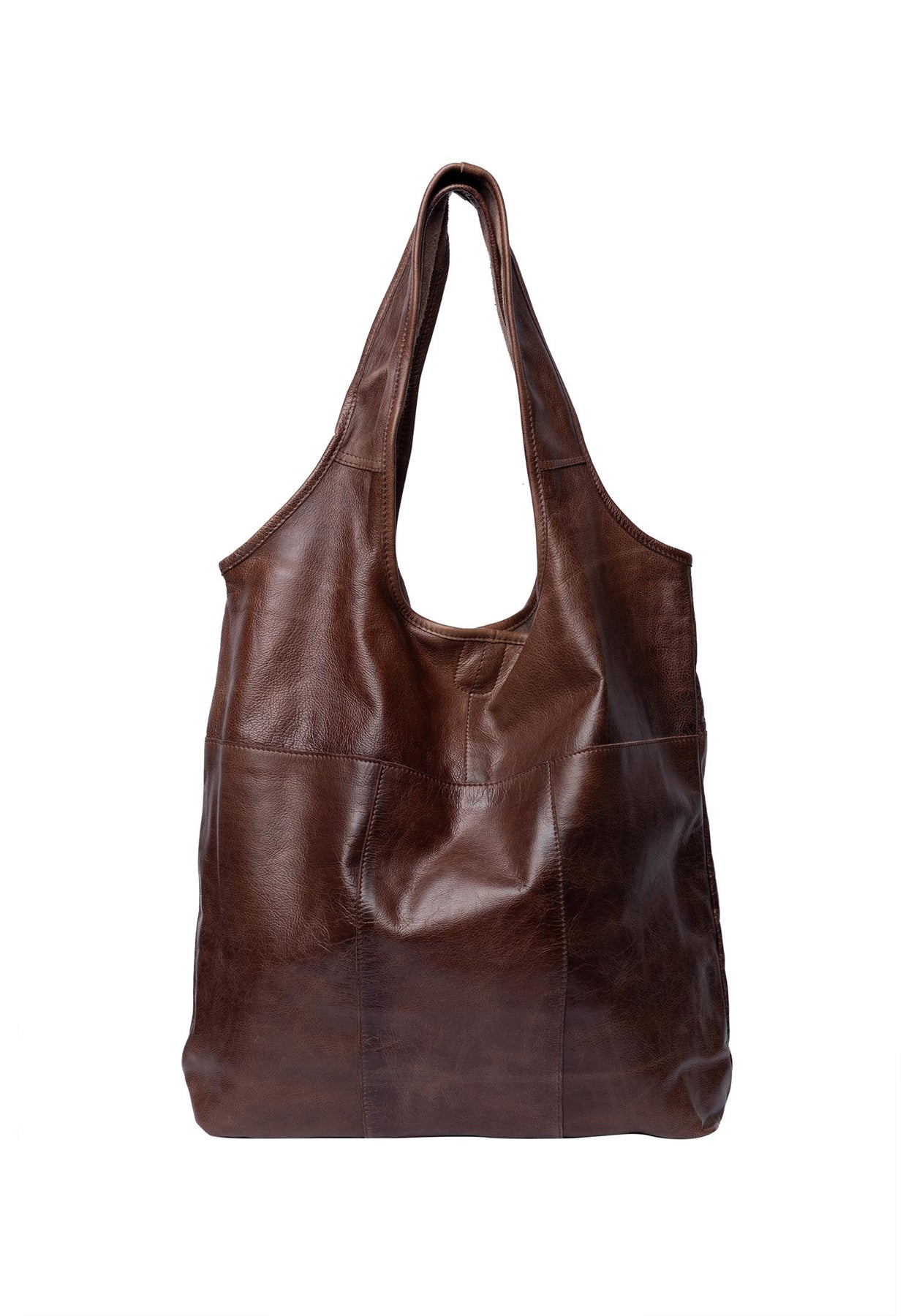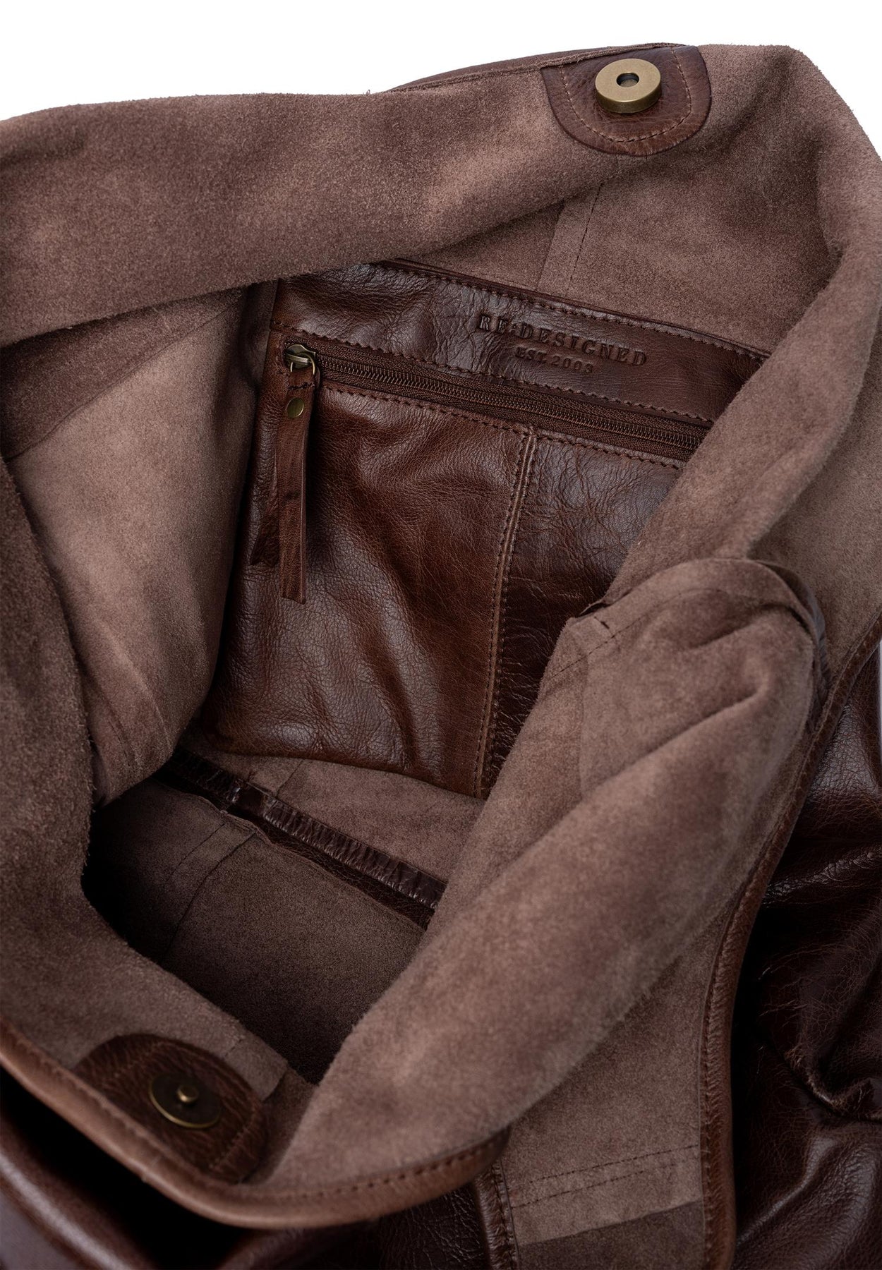 Tøff skinn veske /shopper i kul mørk farge som lukkes med en trykknapp. Har en innvendig glidelås lomme.