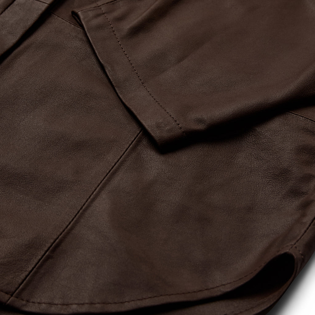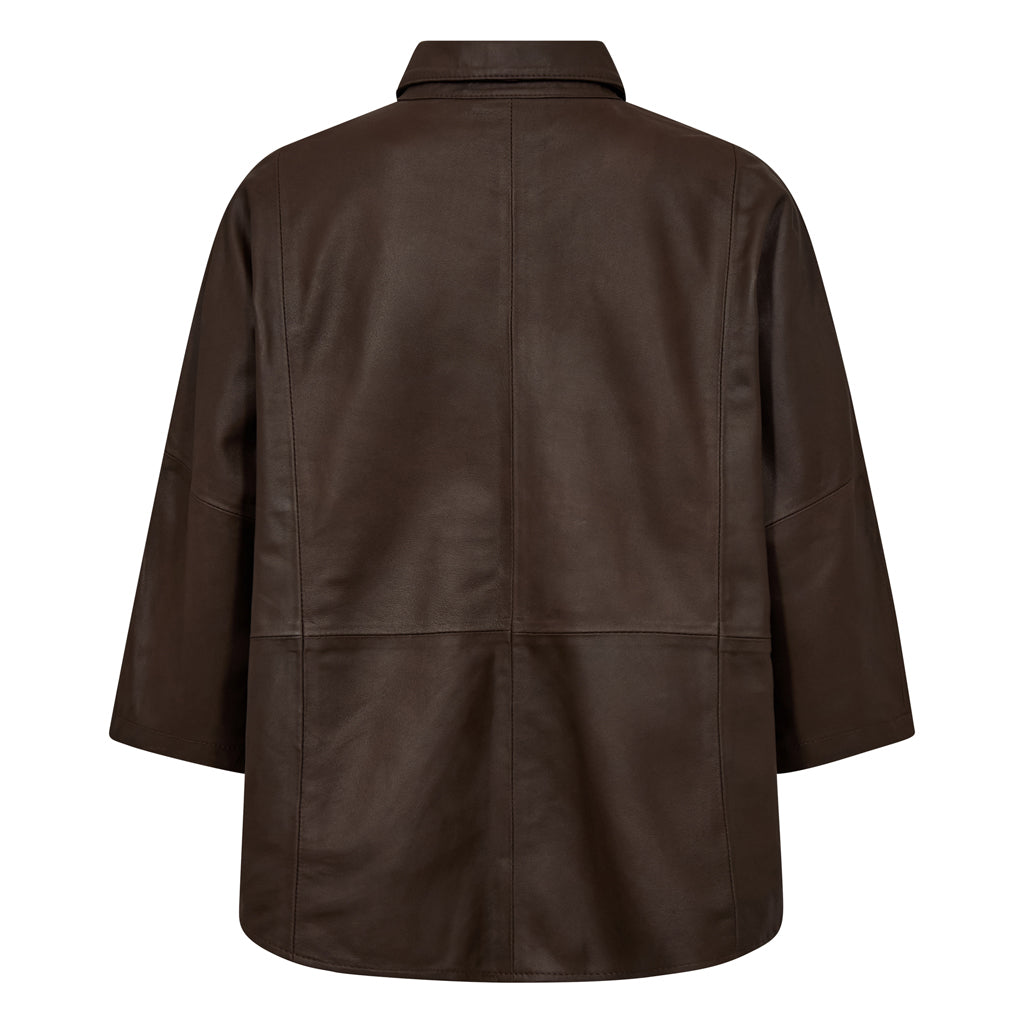 Tøff uforet skinn skjorte med klassisk krage og trykknapper. Skorten har 3/4 lange vide ermer. Svakt avrundet nede.