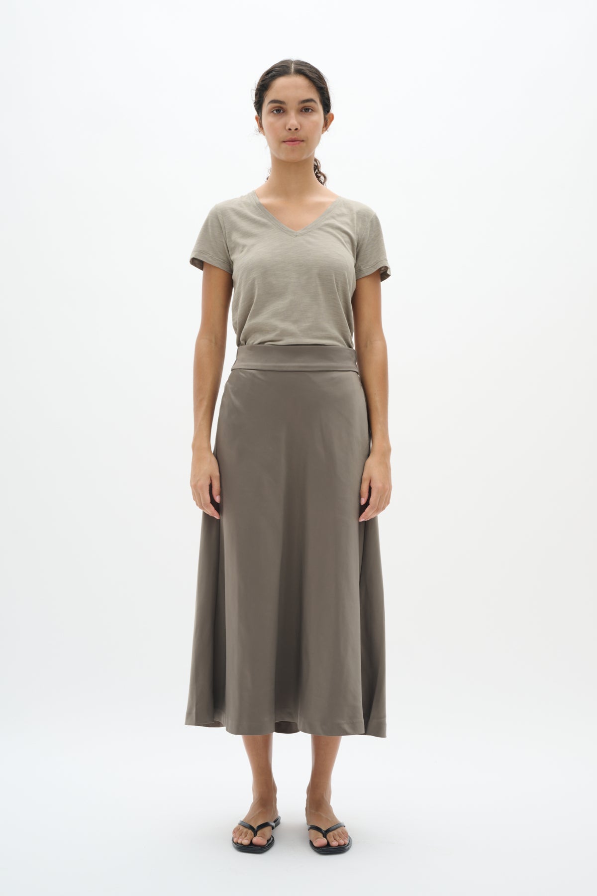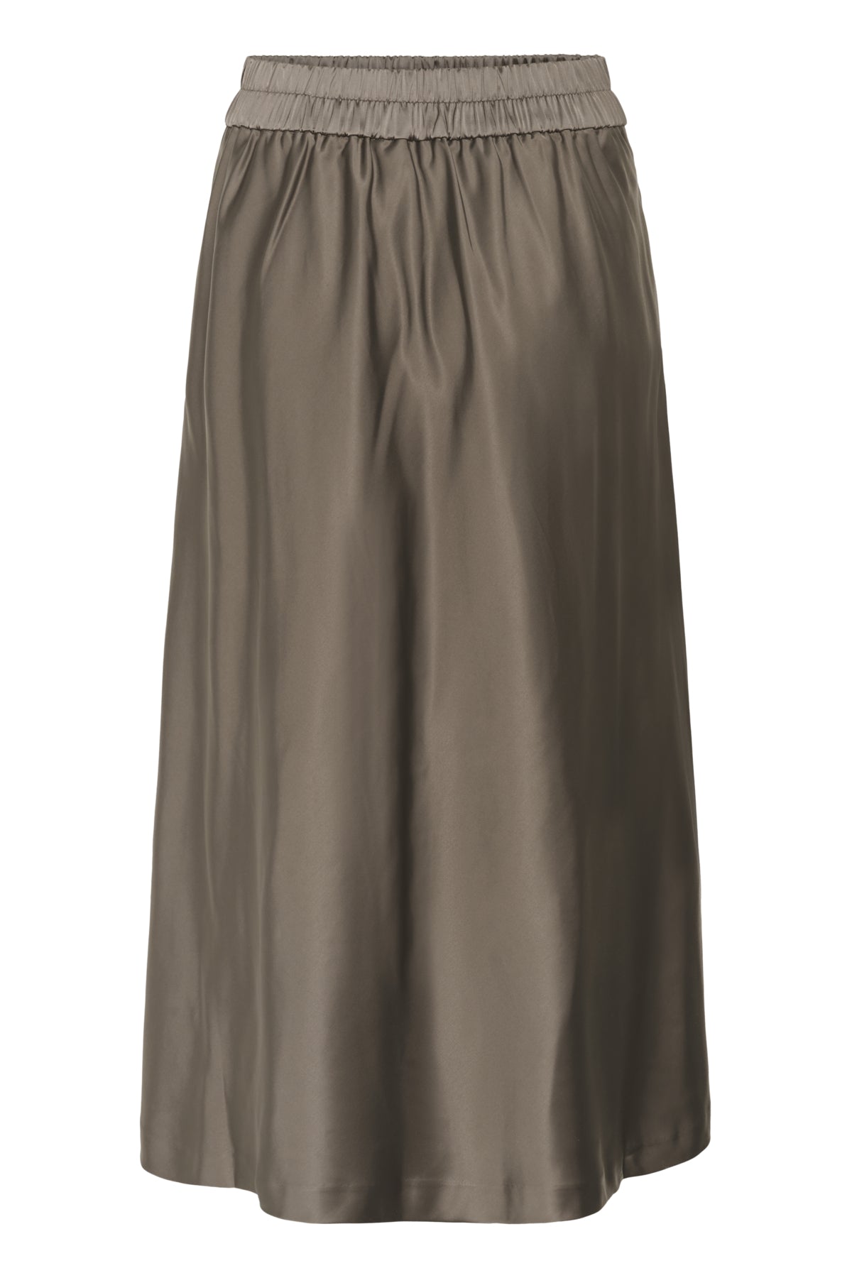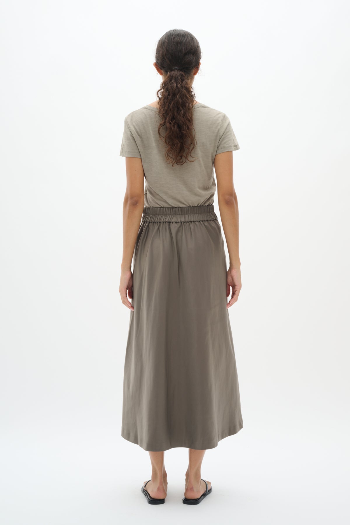 Skjørtet har strikk i livet bak og lommer i sidesømmen.