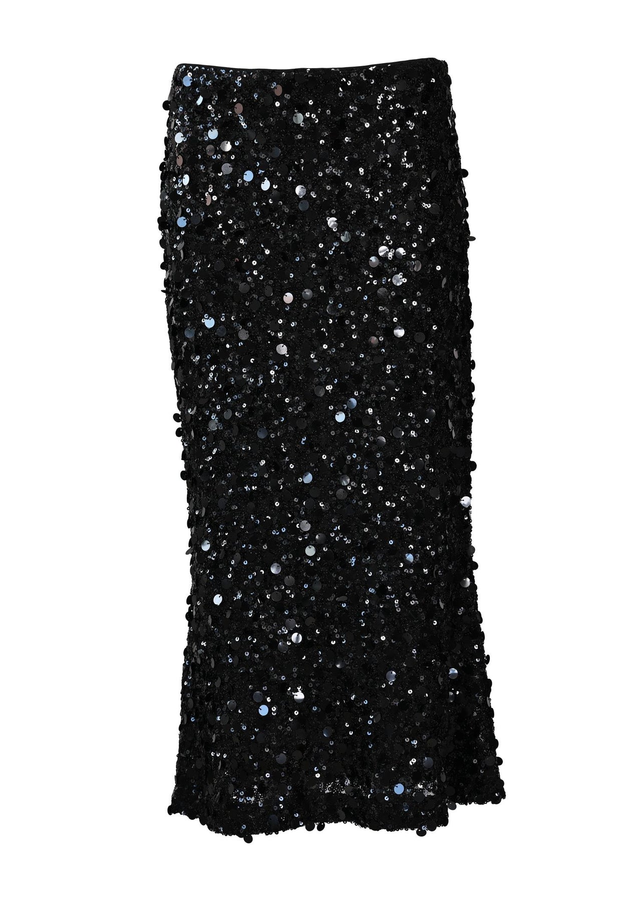 Lekkert langt paljett skjørt med strikk i livet og med glidelås i siden. Skjørtet er foret.