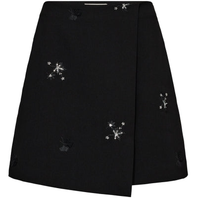 Elegant skjørt med flatterende omslagsdetalj. Skjørtet har vakre håndbroderte perledetljer som gir et eksklusivt og feminint utseende.