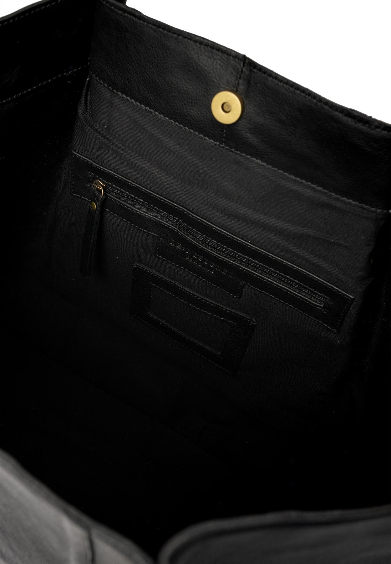 Glidelås lomme inni og 2 åpne lommer. Vesken lukkes med trykknapp.